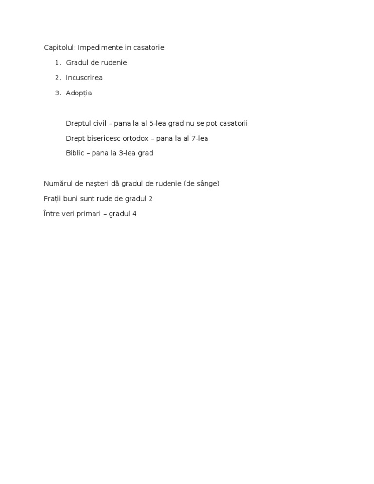Pe acest site la rudenia ca impediment la casatorie scrie ca este interzisa casatoria pana la rudele de gradul vii inclusiv, dar ca se pot acorda dispense in cazurile rudelor de. Gradul de rudenie conform legii în redacția nouă (după 01.03.2019). Vor fi acceptați și pasagerii care sunt rude de gradul 1 a persoanelor descrise in punctul 4 si 5. În limba română, gradele de rudenie sunt descrise prin alianță, consangvinitate și prin adopție. (2) rudele soţului sunt, în aceeaşi linie şi acelaşi grad, afinii celuilalt soţ. din prevederile codului civil rezultă că gradul de rudenie se stabileşte după numărul naşterilor.