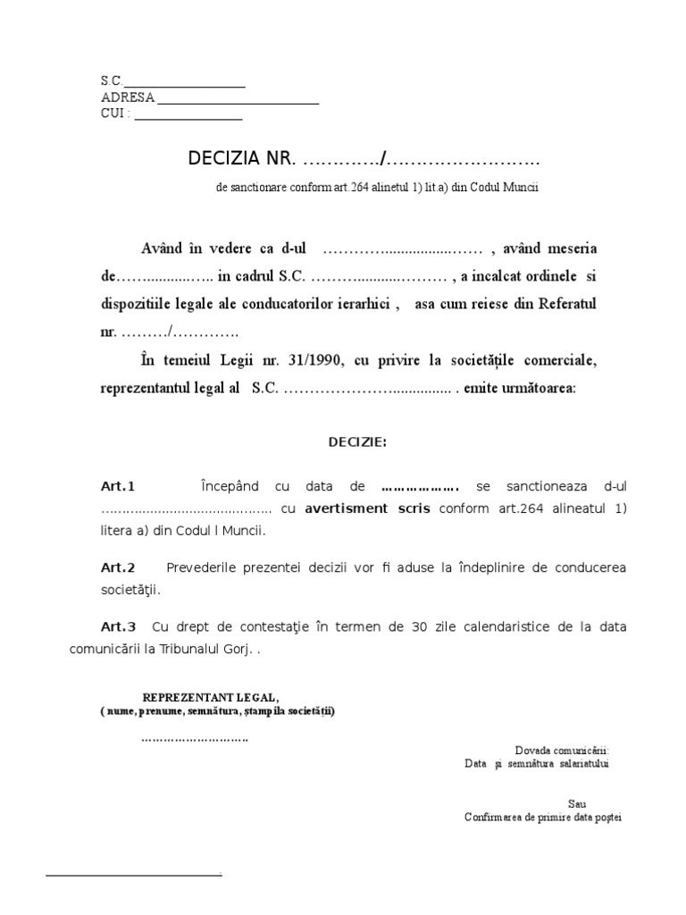 untuk "Avertismentul Scris Se Inregistreaza In Revisal"