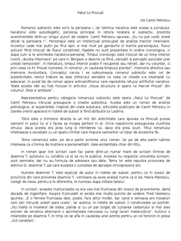 vizitati articolul complet aici : https://www.printrecarti.ro/23101-camil-petrescu-patul-lui-procust.html Prin patul lui procust patrunde in literatura noastra prima influenta identificabila a artei literare al lui marcel procust (t. Camil petrescu, pa tul lui procust, fundafla regali pentru literaturi gi arti, bucuregti, 1946. Patul lui procust este unul dintre primele romane in care se problematizeaza insusi actul scrierii.